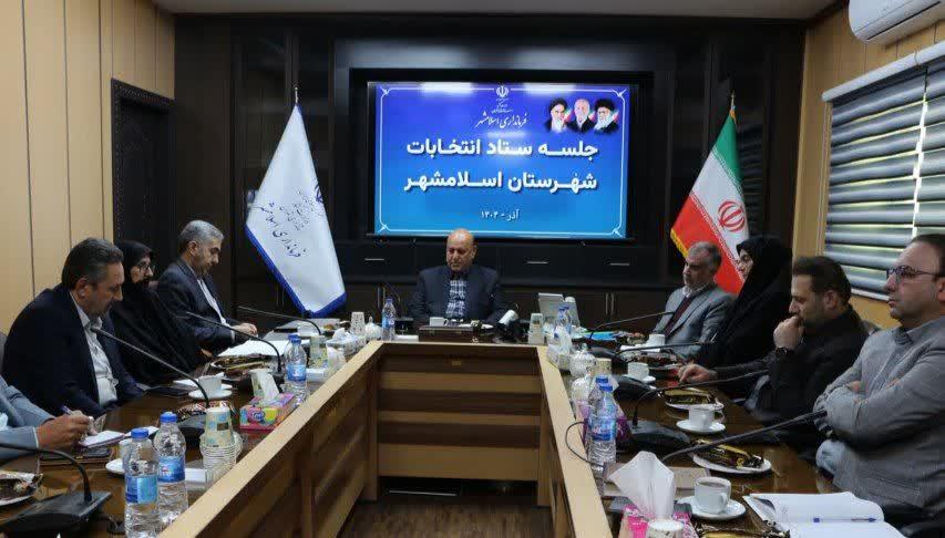 فضای سازی مناسب شهرها و روستاها جهت افزايش مشارکت مردم در انتخابات، برگزاری مستمر جلسات ستاد انتخابات در بخشداری ها، جمع بندی گزارشات مربوط به آخرین وضعیت شعب اخذ رای، ساماندهی نمایندگان فرماندار و عوامل اجرایی شعب، تامین تجهیزات و نحوه اجرای برنامه های آموزشی از جمله موضوعاتی بود که در این جلسه مورد تاکید فرماندار اسلامشهر قرار گرفت.