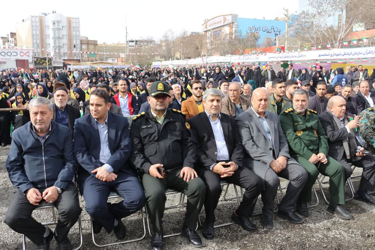 به گزارش روابط عمومی فرمانداری اسلامشهر راهپیمایی مردم اسلامشهر با حضور نوراله طاهری فرماندار شهرستان، حجت الاسلام برقراری امام جمعه اسلامشهر، سردار امیر عبداللهیان جانشین فرمانده سپاه حضرت سیدالشهدا(ع) استان تهران، اعضای شورای تامین و مسئولان و مدیران ادارات و اقشار مختلف مردم با تجمع در مقابل سپاه ناحیه سیدالشهداء(ع) از ساعت ۱۰ صبح به سمت خیابان آیت اله کاشانی و محل تجمع و برگزاری مراسم پایانی آغاز شد.
